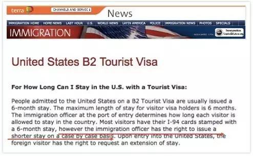 美國(guó)移民局官網(wǎng)規(guī)定:移民官有權(quán)決定入境的停留時(shí)間